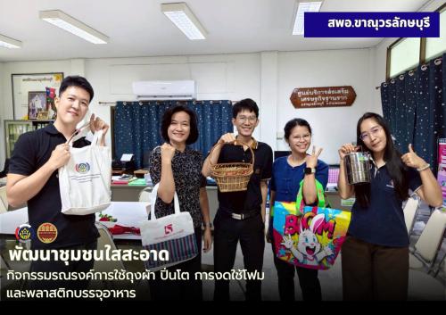 พร้อมกันนี้ได้ดำเนินกิจกรรม “ลดเพื่อเพิ่ม” โดยลดการใช้ทรัพยากร เช่น ลดการใช้กล่องโฟมและพลาสติกบรรจุอาหาร การเปิด-ปิดไฟและเครื่องปรับอากาศตามความเหมาะสม รวมถึงการใช้กระดาษแบบหน้า-หลัง (reuse) เพื่อช่วยลดค่าใช้จ่าย และสร้างความตระหนักในการรักษาสิ่งแวดล้อมให้กับบุคลากรในสำนักงาน ณ ห้องสำนักงานพัฒนาชุมชนอำเภอขาณุวรลักษบุรี ชั้น 2