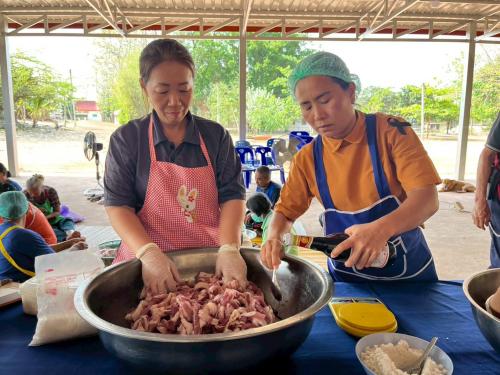 2) ฝึกอาชีพกลุ่มเป้าหมาย หมูส้มและ หมูแดดเดียว